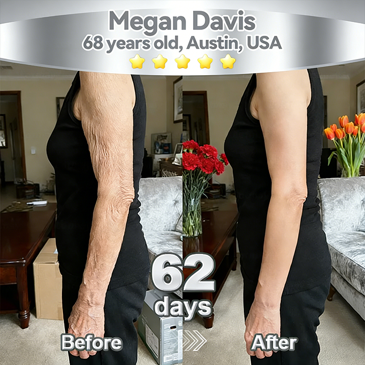 I committed to using it consistently, applying it twice daily for about three weeks. To my surprise, I started noticing significant changes after just one week! The cream absorbed quickly and felt refreshing on my skin. By the end of the month, my arms felt noticeably firmer, and the sagging skin looked much smoother. This product has completely transformed my confidence, and I’m truly grateful for it! I highly recommend it to anyone dealing with similar issues! - Ashley Davis; ⭐⭐⭐⭐⭐